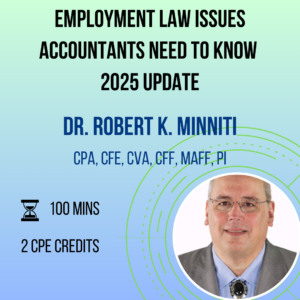 Dr. Minniti is the President and Owner of Minniti CPA, LLC. Dr. Minniti is a Certified Public Accountant, Certified Forensic Accountant, Certified Fraud Examiner, Certified Valuation Analyst, Certified in Financial Forensics, Master Analyst in Financial Forensics, Chartered Global Management Accountant, and is a licensed private investigator in the state of Arizona.