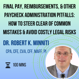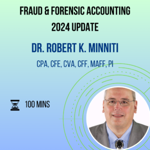 Dr. Minniti is the President and Owner of Minniti CPA, LLC. Dr. Minniti is a Certified Public Accountant, Certified Forensic Accountant, Certified Fraud Examiner, Certified Valuation Analyst, Certified in Financial Forensics, Master Analyst in Financial Forensics, Chartered Global Management Accountant, and is a licensed private investigator in the state of Arizona.